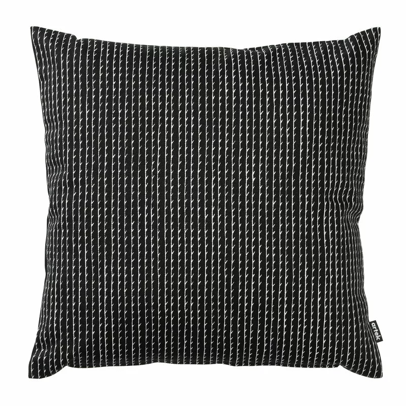 La fodera per cuscino Rivi è decorata dal motivo onomimo, disegnato da Ronan e Erwan Bouroullec per Artek, e caratterizzato da un disegno formato da una fila di lunghe linee parallele e da particolari che si ripetono. La fodera per cuscino è realizzata in resistente tela di cotone.
