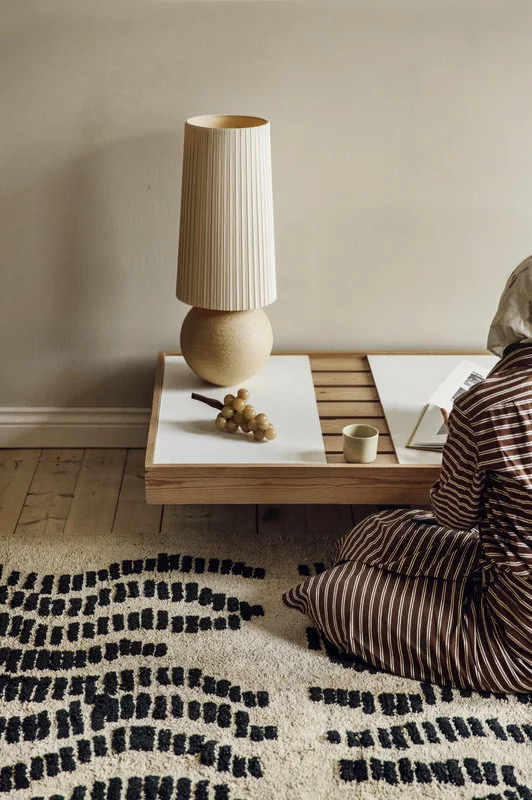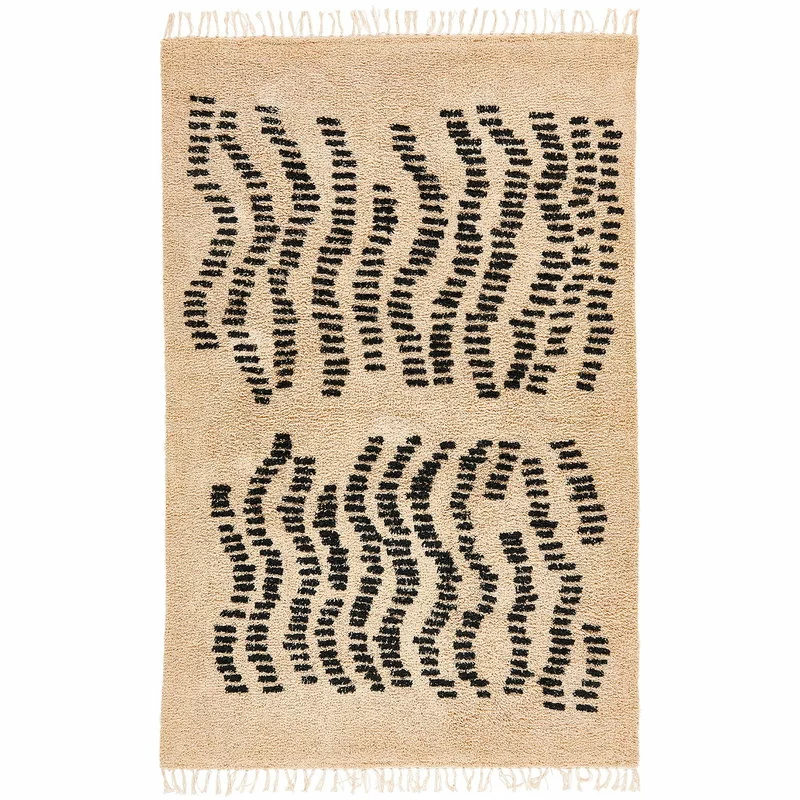 Il tappeto Dyyni di Finarte è stato disegnato dal duo finlandese Saana ja Olli. Il tappeto deve il nome alla parola finlandese che significa duna, evocando immagini di spiagge sabbiose e sereni paesaggi desertici. Il tappeto Dyyni, con il suo motivo organico ed il colore beige, donerà un tocco naturale alla vostra casa. Il tappeto è realizzato a mano in India con cotone riciclato; il materiale proviene da scarti di lavorazione, ritagli e residui dell’industria locale dell’abbigliamento.