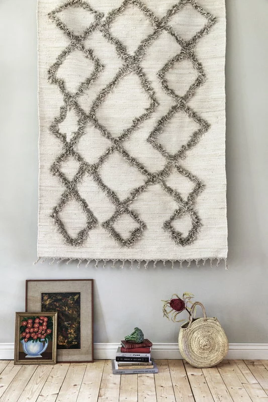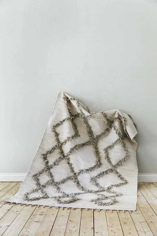 Il tappeto Tie di Finarte unisce la tradizione scandinava delle decorazioni per parete e il tradizionale tappeto di cotone. Disegnato dal duo di designer finlandesi Saana ja Olli, il tappeto Tie può essere appeso alla parete o posizionato sul pavimento. Tie è una parola finlandese che significa strada e il tappeto è realizzato in cotone riciclato e rifinito da frange.