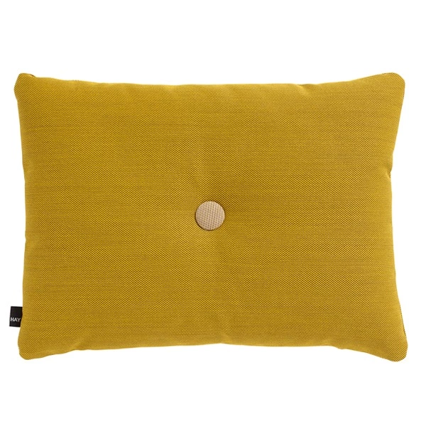 Il cuscino Dot di HAY è caratterizzato da un bottone in tessuto al centro su ciascun lato – uno in un colore in contrasto e l’altro nella stessa tonalità del cuscino. I cuscini Dot sono rivestiti in tessuto di alta qualità Steelcut Trio di Kvadrat, realizzato in lana e nylon. Il cuscino Dot è disponibile in vari colori.