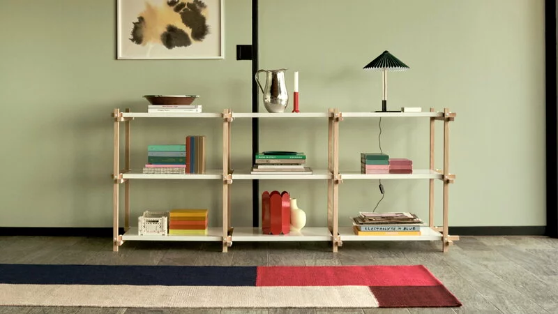 I tappeti Flat Works di HAY sono opera dell’artista newyorchese Ethan Cook, noto per i suoi lavori geometrici e colorati su tele di produzione propria. La linea Flat Works, frutto della collaborazione tra Cook e HAY, trasforma le opere di Cook in bellissimi tappeti in misto lana, tessuti a mano in sorprendenti colorazioni.