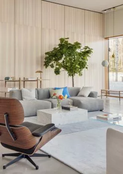 Moiré di HAY è un tradizionale tappeto Kelim, tessuto a mano in India utilizzando diverse combinazioni di lana colorata. Questo tappeto unisce il calore della lana, le antiche tecniche di tessitura asiatiche e il design scandinavo in una combinazione suggestiva. I tappeti rettangolari Moiré hanno bordi in rilievo e sono disponibili in diverse combinazioni cromatiche.