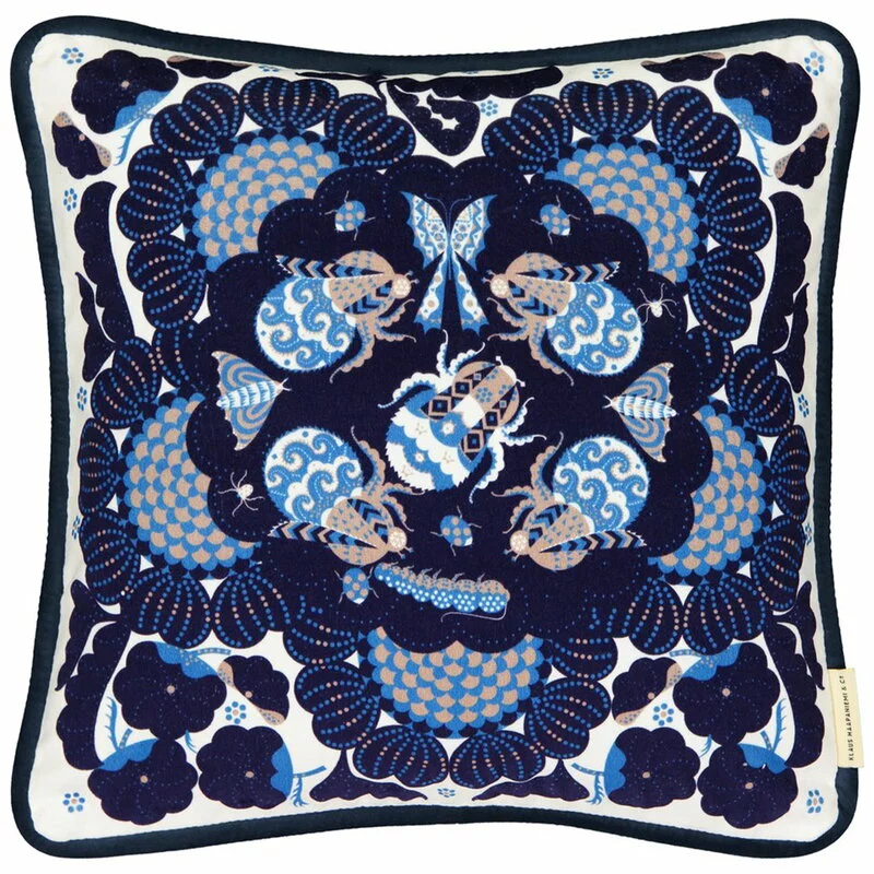 La fodera per cuscino Bumble Bees di Klaus Haapaniemi è decorata da un motivo con calabroni blu e altri insetti ornamentali. La fodera per cuscino è realizzata in lussuoso velluto di cotone ed ha una chiusura lampo nascosta.