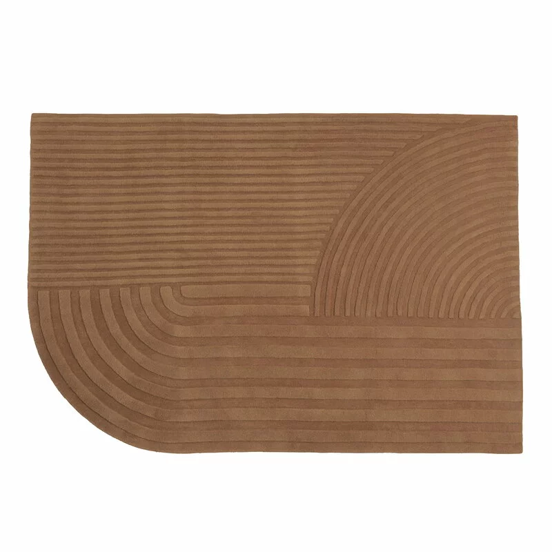 Il tappeto Relevo di Muuto, grazie alla sua forma particolare e a un motivo vivace, si farà sicuramente notare in qualunque stanza, che si tratti della camera da letto o del salotto. Il tappeto di lana è stato disegnato da Studiopepe. Per questo tappeto dall’aspetto scultoreo, lo studio di design italiano si è ispirato alla land art, movimento artistico che usa i materiali naturali come la terra, le pietre e l’acqua. Di conseguenza, il motivo grafico del tappeto Relevo ha molto in comune con le linee sinuose tracciate sulla superficie della terra.