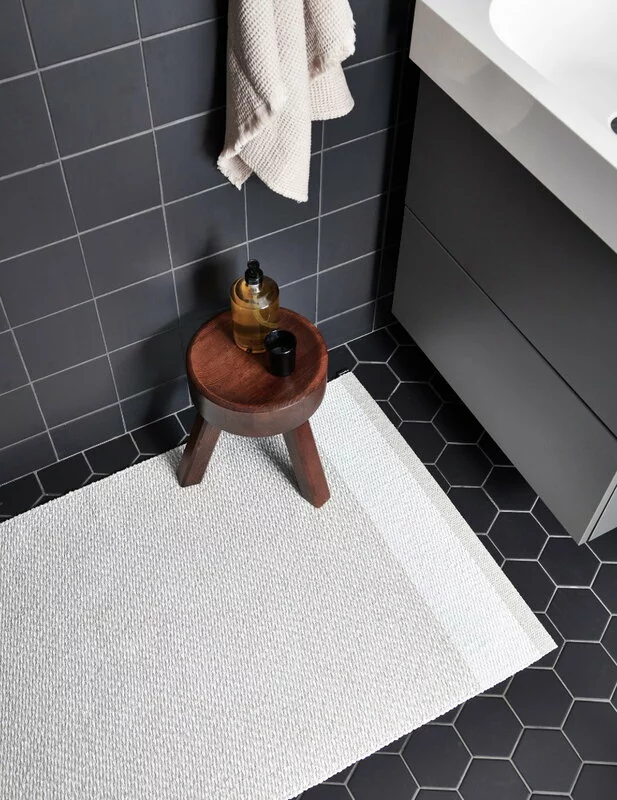 Il tappeto Edit di Pappelina presenta un motivo semplice e senza tempo, tessuto in tre colori che si fondono l’uno con l’altro formando una superficie vivace dalla lucentezza metallica. I bordi, piegati due volte, sono orlati con una robusta cucitura e in un angolo è presente un’etichetta in gomma cucita con il logo Pappelina. Il tappeto Edit può essere lavato a mano o in lavatrice.