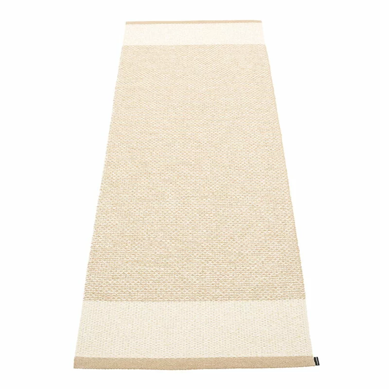 Realizzato in nastro di PVC senza ftalati, il tappeto di plastica è facile da pulire e costituisce una scelta pratica per qualsiasi ambiente. Data la sua forma stretta, si adatta perfettamente come passatoia in un corridoio o come tappeto da cucina o da esterni. Il tappeto Edit è tessuto con tecniche tradizionali a Dalarna, in Svezia.