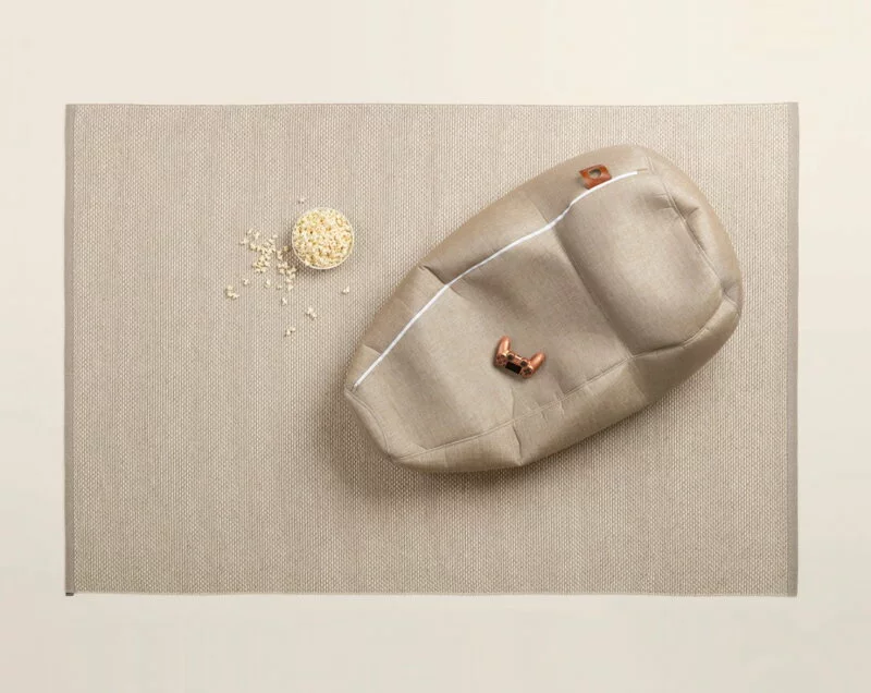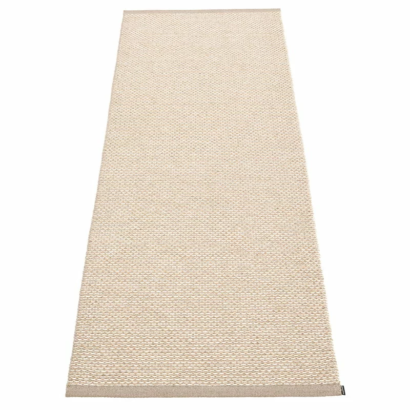 Il tappeto Effi è stato progettato per colmare un vuoto nella collezione di Pappelina: un tappeto di plastica semplice ed elegante senza alcuna decorazione. Disegnato da Lina Rickardsson, il tappeto sembra monocolore da lontano, ma in realtà è stato realizzato utilizzando tre diversi colori. I bordi sono piegati due volte e cuciti.