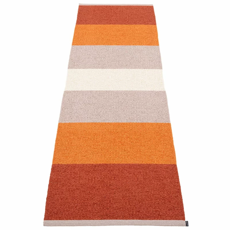 Il tappeto è realizzato in filo di PVC senza ftalati ed è resistente e di facile manutenzione, costituendo perciò una scelta pratica per tutti gli spazi, dalla stanza dei bambini alla cucina. Grazie alla forma stretta, il tappeto è ideale per il corridoio e lo potrete usare anche all’esterno sul balcone, nella veranda e nel patio. Realizzato a Dalarna, Svezia, il tappeto è stato tesssuto usando le tecniche tradizionali ed è disponibile in diverse combinazioni di colori.