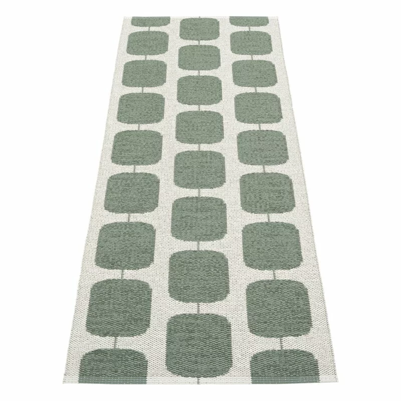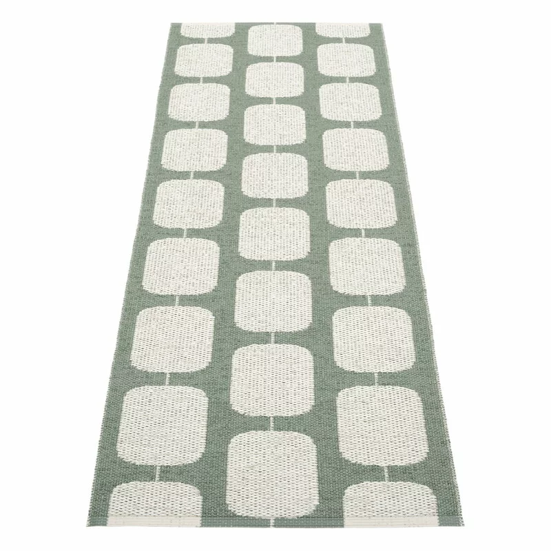 Realizzato in nastro in PVC senza ftalati, il tappeto è facile da pulire e garantisce praticità per ogni tipo di stanza. Data la sua forma stretta, si adatta perfettamente come passatoia in un corridoio o come tappeto da cucina o da esterni. Il tappeto Sten è tessuto con tecniche tradizionali a Dalarna, in Svezia.