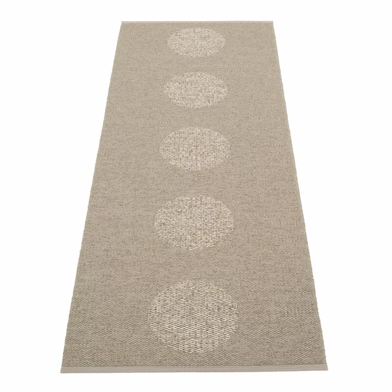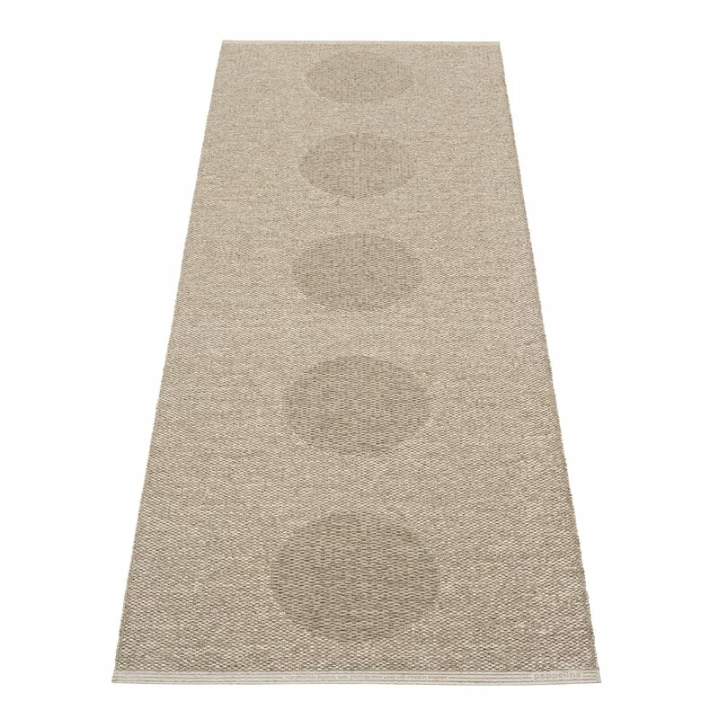 Il tappeto Vera 2.0 di Pappelina presenta un motivo costituito da una fila di grandi punti che conferiscono un tocco semplice ma audace e una delicata lucentezza metallica a qualsiasi arredo. Il design double face raddoppia le possibilità: quando avete voglia di cambiare colore, vi basta capovolgere il tappeto. I bordi del tappeto sono rinforzati e saldati per durare più a lungo può essere lavato a mano o in lavatrice.