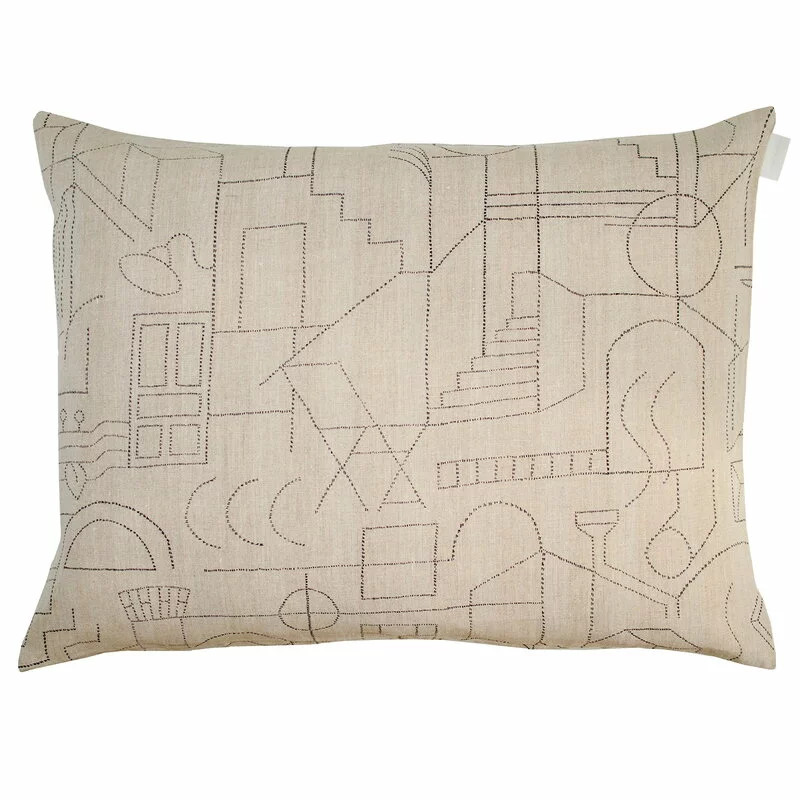 La fodera per cuscino Unien talo di Saana ja Olli ha come ispirazione i sogni architettonici e le vecchie tradizioni finlandesi di costruzione delle case. Unien talo (espressione finlandese che significa ”Casa dei sogni) è caratterizzato da motivi astratti e grafici. Tutti i prodotti dei finlandesi Saana ja Olli sono realizzati in resistente tessuto di canapa. I prodotti vengono fabbricati in Finlandia rispettando i principi dello sviluppo sostenibile.