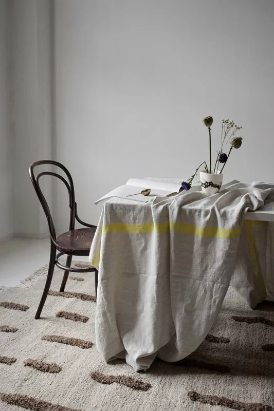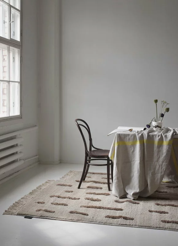 Il tappeto Laine fa parte della collezione Saaristo, disegnata da Anna Pirkola. Saaristo è una parola finlandese che significa arcipelago e si ispira al mare, al suo movimento e all’effetto calmante. Ogni tappeto è realizzato a mano con materiali naturali e perciò è unico, proprio come ciascuna onda del mare.