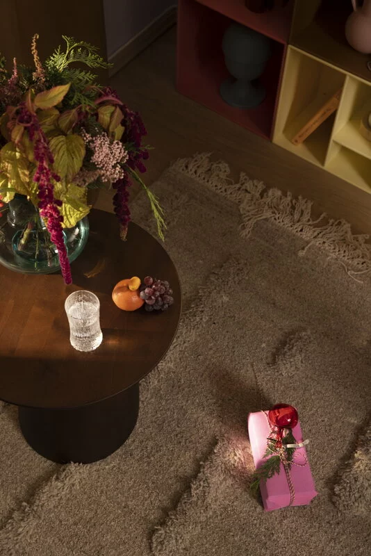 Il motivo annodato eleva la base del tappeto Laine e gli angoli asimmetrici danno un tocco originale al semplice design. I tappeti Laine sono disponibili in diverse combinazioni di colori naturali. Del tappeto è disponibile anche una versione tessuta.