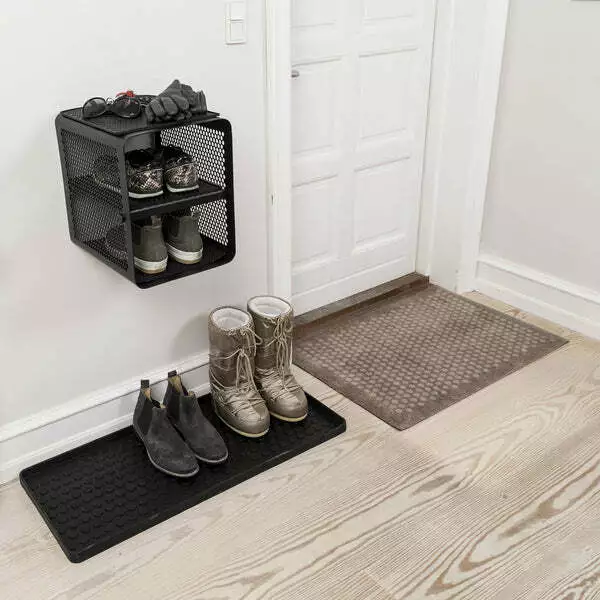 Realizzato in gomma densa, il tappetino poggiascarpe Lines rimane ben saldo su tutti i tipi di superficie ed è facile da pulire con l’aspirapolvere o un semplice risciacquo.