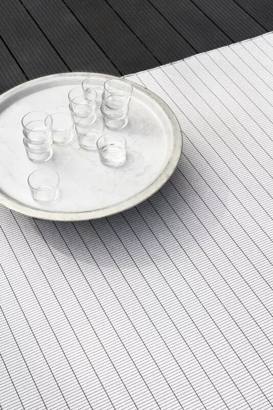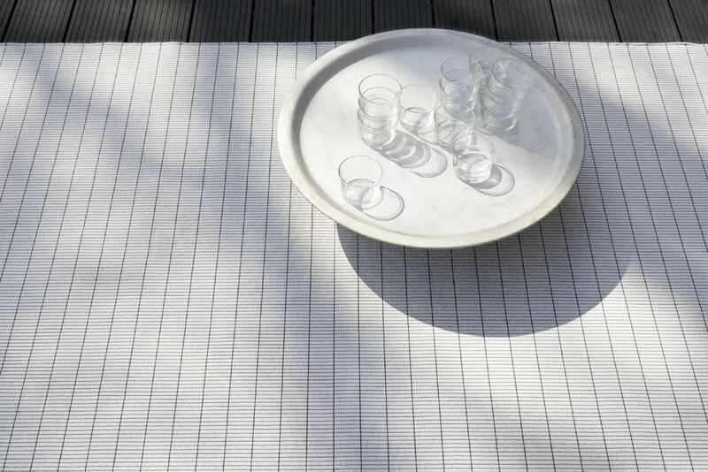 Il tappeto Line In-Out di Woodnotes è realizzato in polipropilene resistente all’umidità e allo sbiadimento, ed è per questo adatto per la cucina e la stanza dei bambini e anche per balconi, verande e altri spazi all’aperto. Il tappeto Line è una scelta perfetta e pratica anche per l’area piscina o la casa sulla spiaggia in quanto le fibre di polipropilene sono resistenti al cloro della piscina e all’acqua del mare.