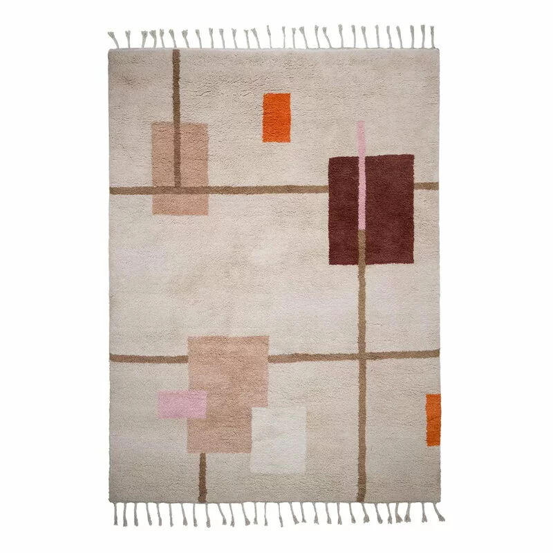 Il tappeto Patch 01 di Woven Works presenta una delicata combinazione di figure geometriche e lana a pelo lungo, soffice e piacevole al tatto. La colorazione di questo tappeto shaggy in lana unisce toni vagamente spenti a colori più accesi, mentre i bordi sono impreziositi da frange intrecciate.